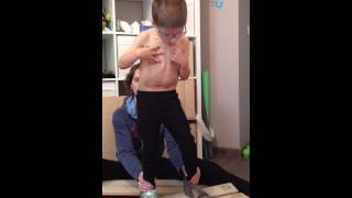Mathieu monte les escaliers tout seul